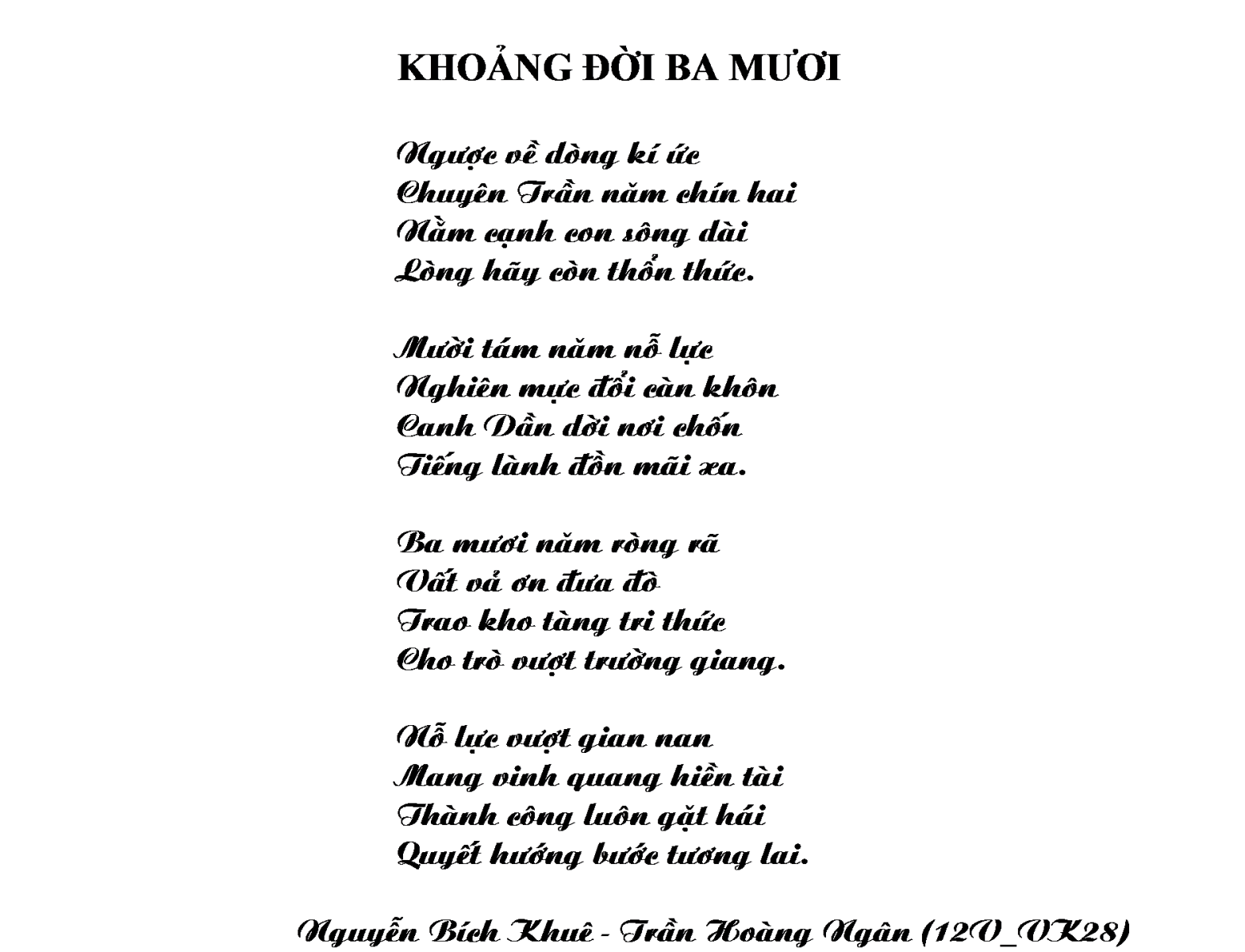 KHOẢNG ĐỜI BA MƯƠI