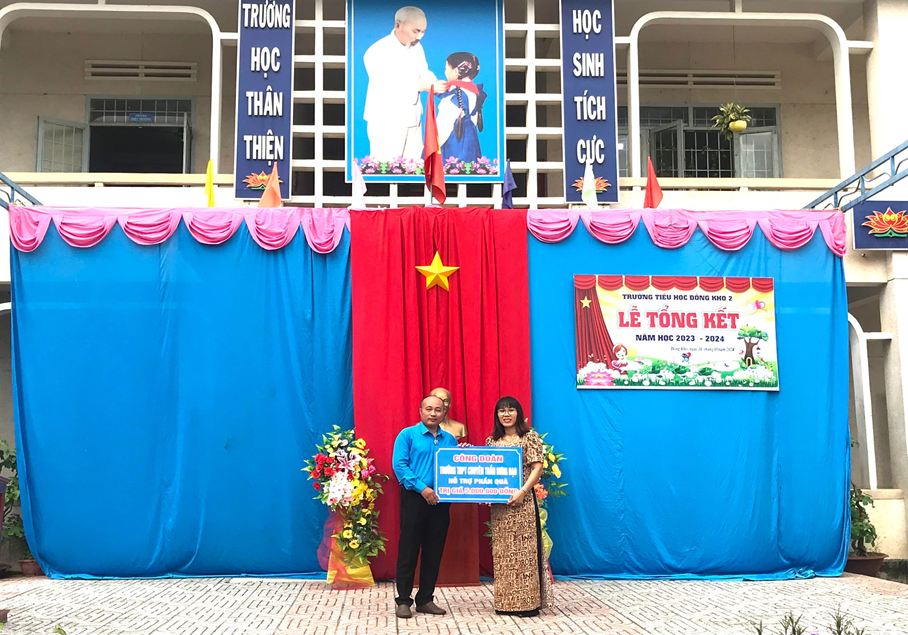 Thực hiện cuộc vận động của ngành Giáo dục, thực hiện Nghị quyết của Đại hội Công đoàn nhiệm kỳ 2023-2028, Công đoàn phối hợp với chính quyền chung tay thực hiện hỗ trợ giáo dục vùng sâu, vùng xa và phong trào “Trường giúp trường”, ngày 30/5/2024 Ban Chấp hành Công đoàn Trường THPT chuyên Trần Hưng Đạo phối hợp với Ban Giám hiệu và Đoàn thanh niên đã đến thăm và tặng quà cho Trường THCS Huy Khiêm và Trường Tiểu học Đồng Kho II, nhân dịp Lễ tổng kết năm học 2023-2024.