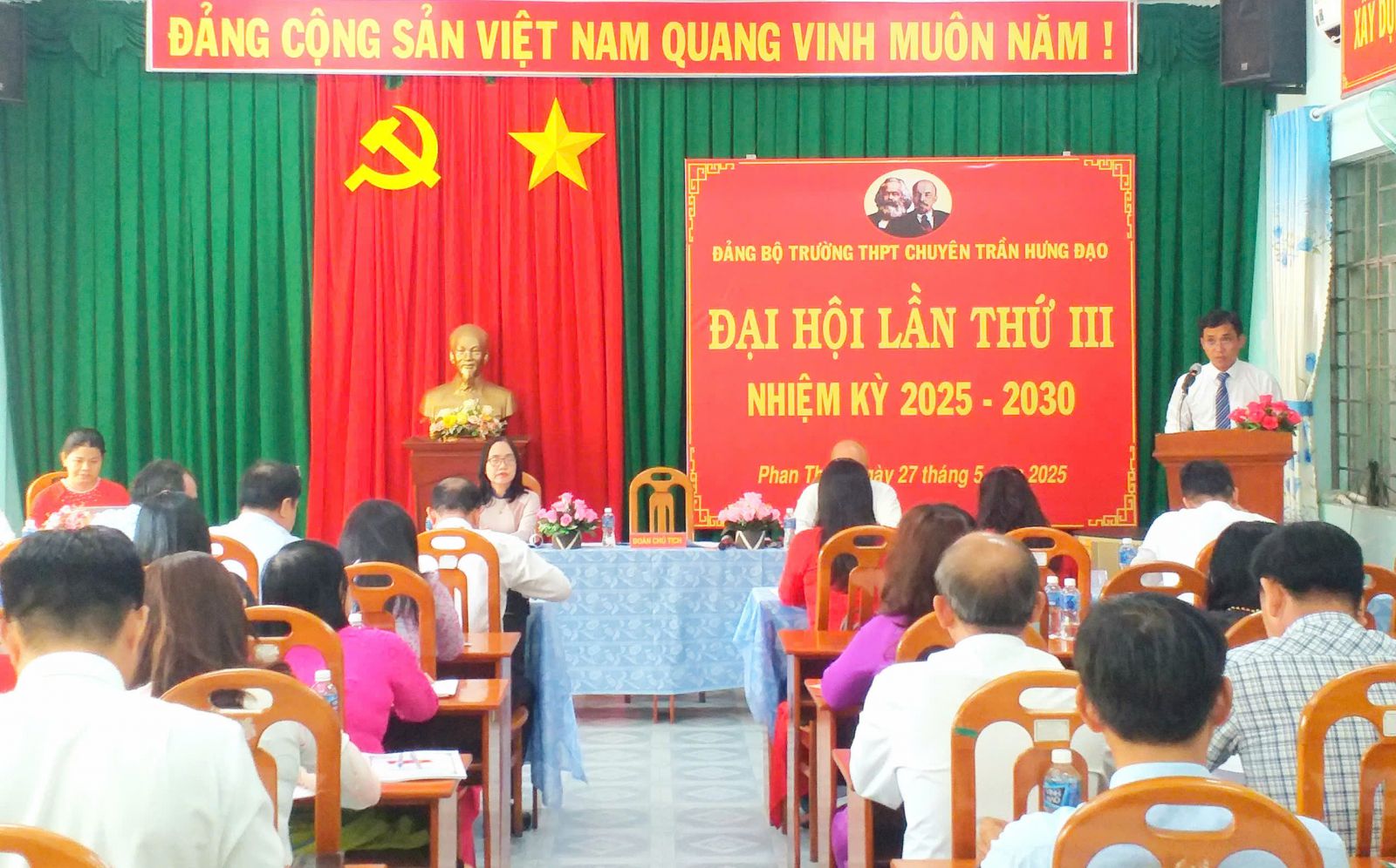 Thực hiện Kế hoạch số 266-KH/TU của Thành ủy thành phố Phan Thiết về tổ chức đại hội đảng bộ các cấp tiến tới Đại hội đại biểu toàn quốc lần thứ XIV của Đảng, sáng ngày 27/5/2025, Đảng bộ Trường THPT chuyên Trần Hưng Đạo long trọng tiến hành đại hội đảng bộ lần thứ III, nhiệm kỳ 2025-2030. Tham dự đại hội có đồng chí Lê Văn Hưng, Ủy viên Ban thường vụ, Trưởng Ban tổ chức Thành ủy và các đồng chí trong Tổ chỉ đạo đại hội.