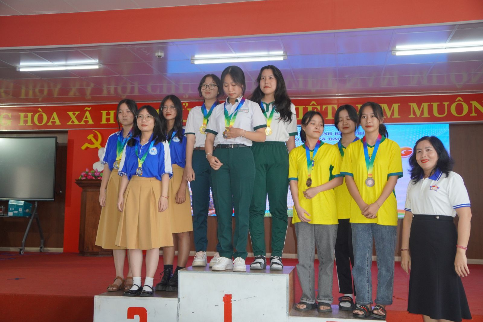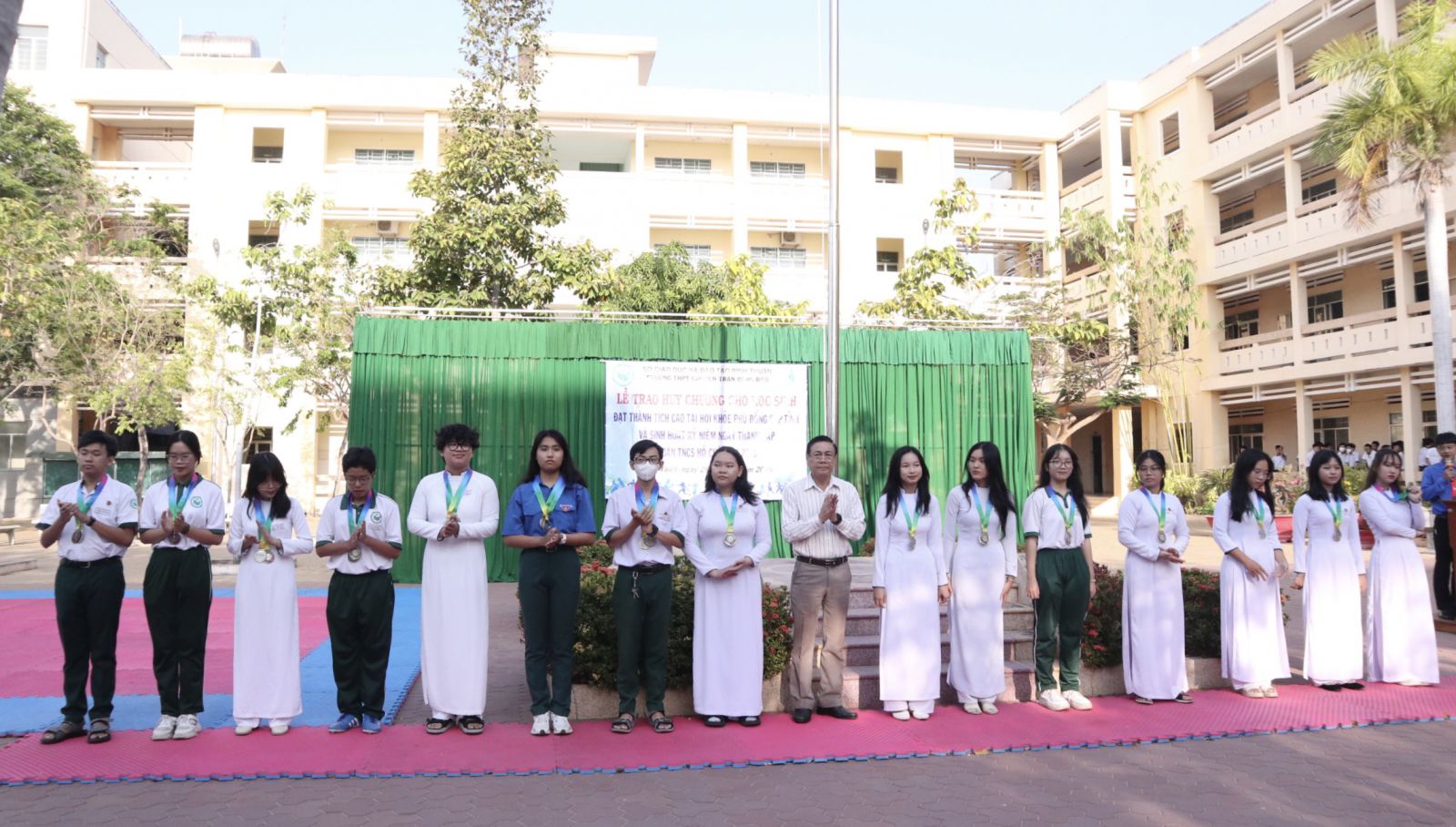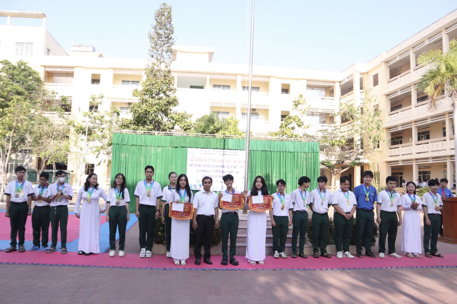 Vào tiết chào cờ, ngày 25 tháng 3 năm 2024 nhà trường đã tổ chức trao Huy chương cho học sinh đạt thành tích cao tại Hội khỏe Phù Đổng tỉnh Bình Thuận lần thứ XVI, năm học 2023-2024 tại sân lễ chào cờ của nhà trường.