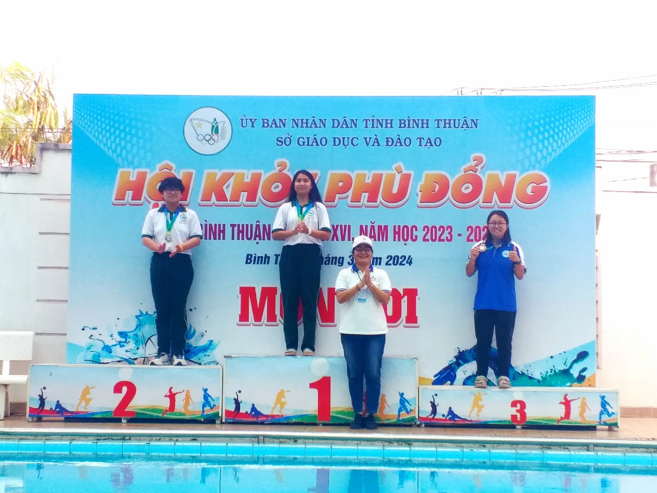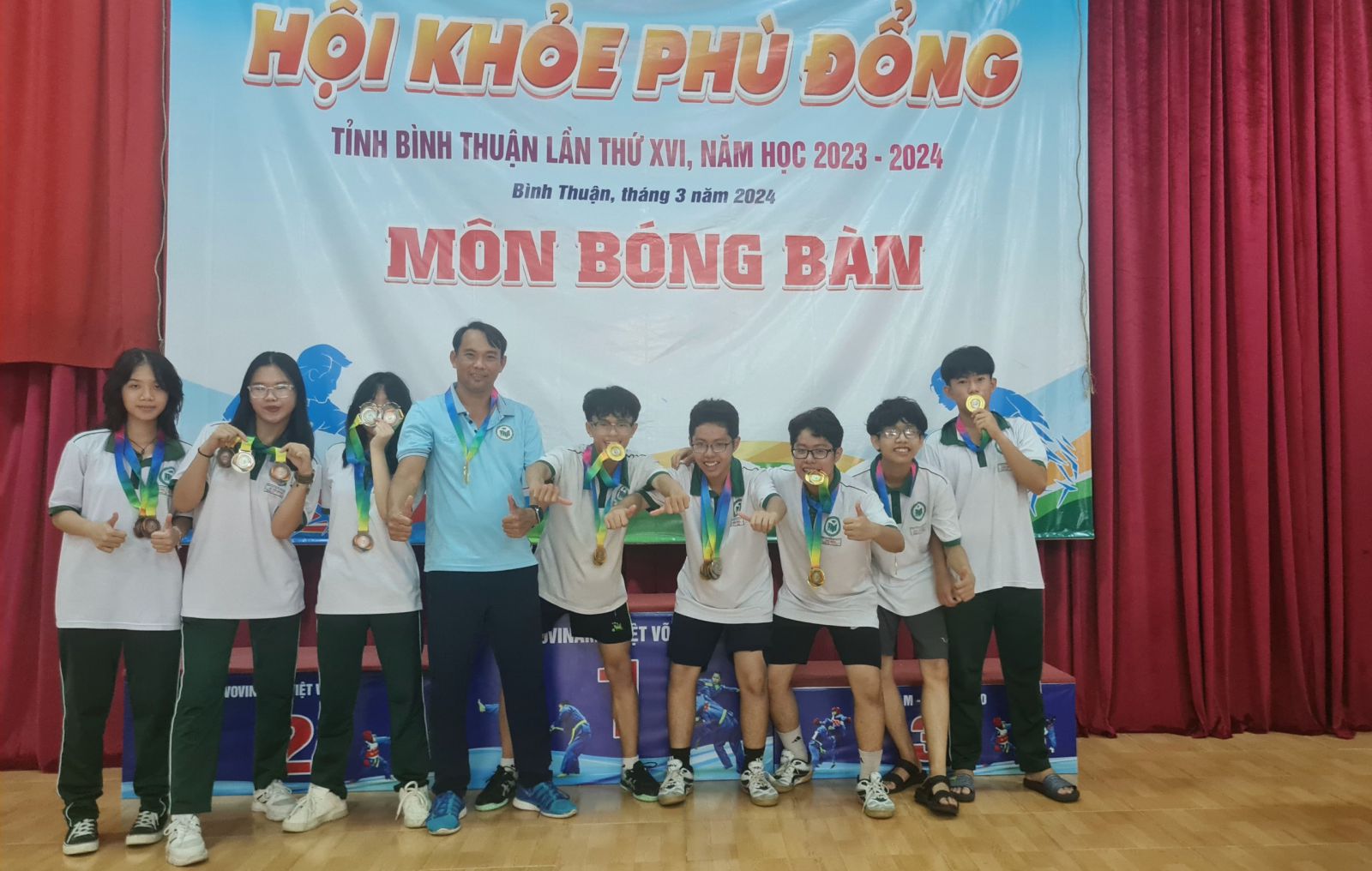 Cụ thể: Được sự đồng ý của Đảng ủy-BGH nhà trường. Tổ Giáo dục Thể chất-Quốc phòng đã lên kế hoạch tuyển chọn, tổ chức tập luyện và tham Hội khỏe Phù Đổng tỉnh Bình Thuận lần thứ XVI, năm học 2023-2024, với 56 Vận động viên tranh tài ở 7 môn chủ lực của trường: Cụ thể môn Bơi, Cờ vua, Bóng bàn, Cầu lông, Bóng đá, Võ Cổ truyền và Võ Vovinam, thời gian thi đấu từ ngày 3/3 đến ngày 11/3/2024. Kết quả Hội Khỏe Phù Đổng tỉnh lần thứ XVI, năm học 2023-2024 Đoàn Thể thao của trường chúng ta đạt được 34 Huy chương: Trong đó có 16 Huy chương Vàng, 13 Huy chương Bạc và 5 Huy chương Đồng và Nhất đoàn Bơi, Nhất đoàn Bóng bàn, Nhất đoàn Cờ vua. Cao hơn kết quả năm trước 9 Huy chương và 2 giải Nhất đoàn.